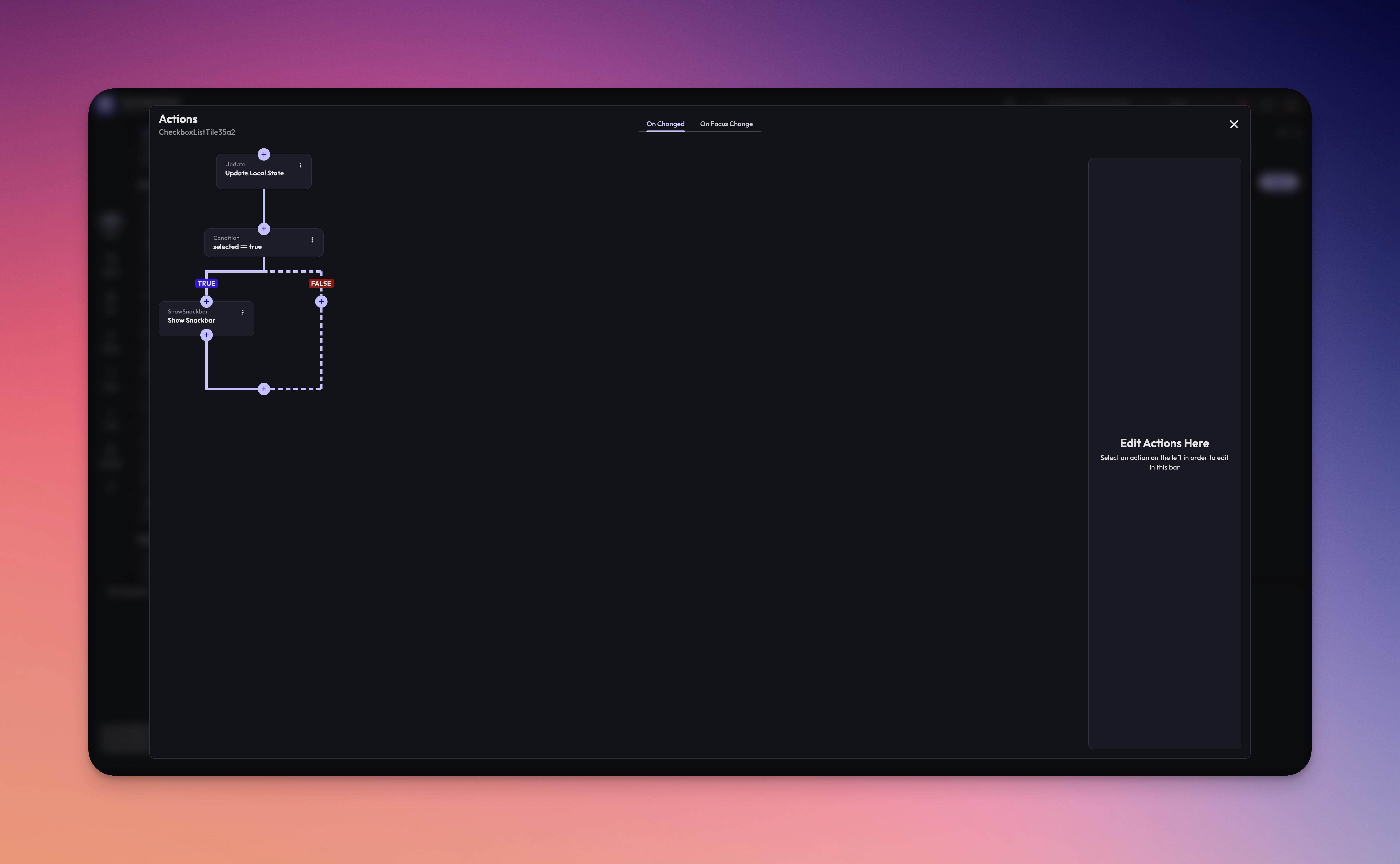 Click on the CheckboxListTile and open the Action Flow Editor.