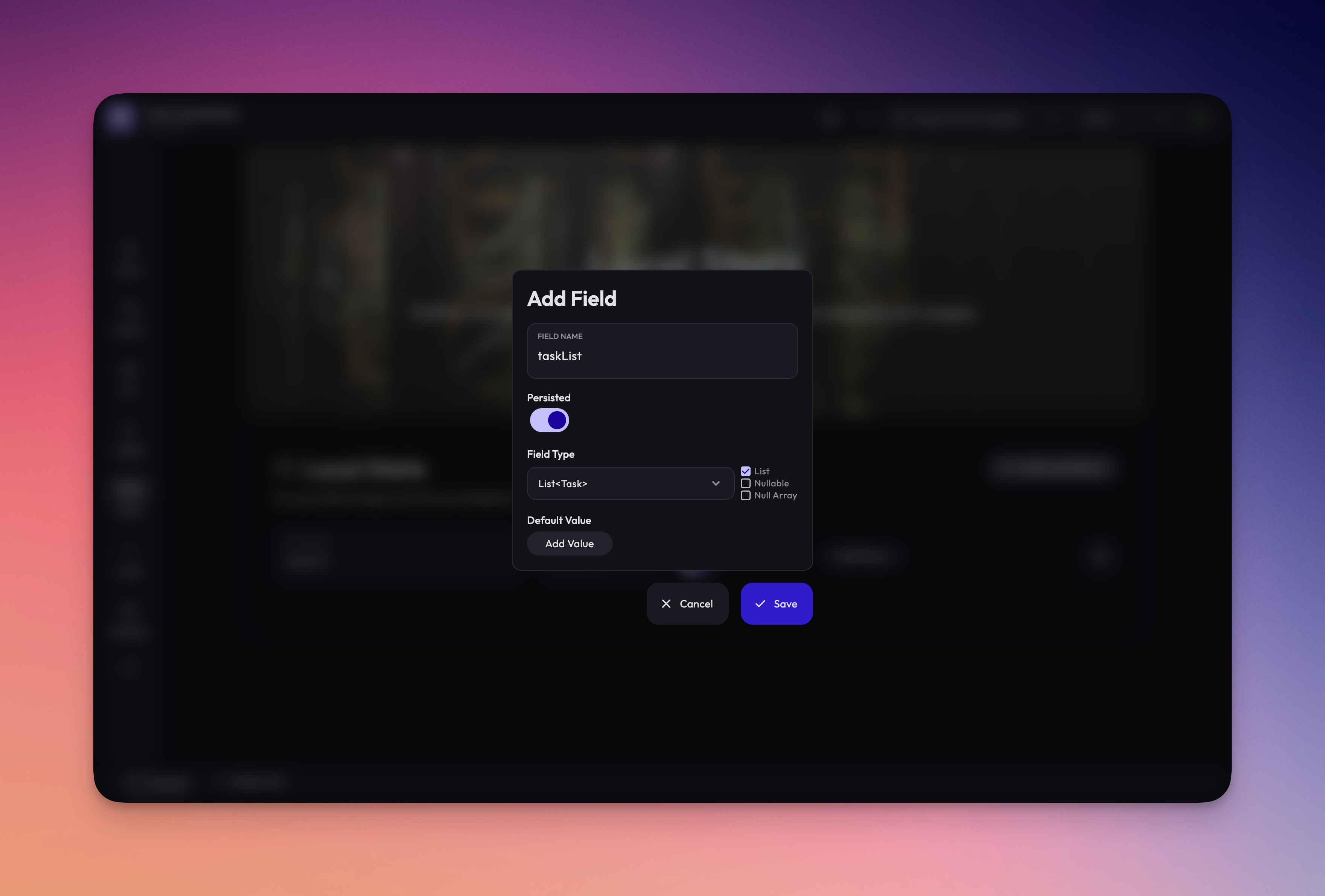 4. Enable the **Persisted** switch to allow the application to store the Tasks in the device.